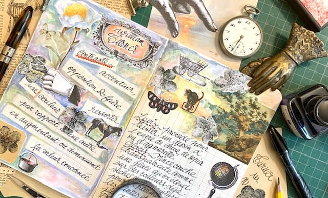 L'aquarelle est faite de pigments écrasés, mélangés avec de l'eau et de la gomme arabique. Elle est généralement appliquée sur un support en papier. L'aquarelle est utilisée selon la méthode du lavis, c'est-à-dire qu'elle est diluée avec plus ou moins d'eau, ce qui lui permet d'avoir plus ou moins de transparence, créant ainsi divers effets en fonction du type de papier. L'aquarelle convient parfaitement au travail d'esquisse et aux carnets de voyage, comme en témoignent les fameux carnets de Eugène Delacroix. Étant facilement transportable, elle permet de mettre rapidement de la couleur sur une image initialement dessinée au crayon ou au feutre fin.
