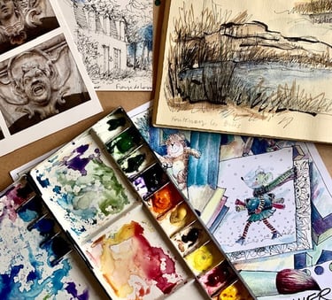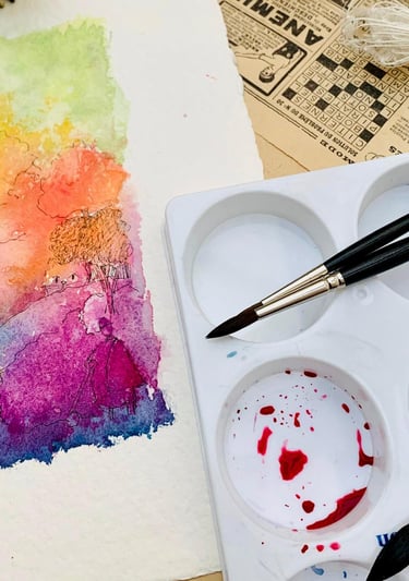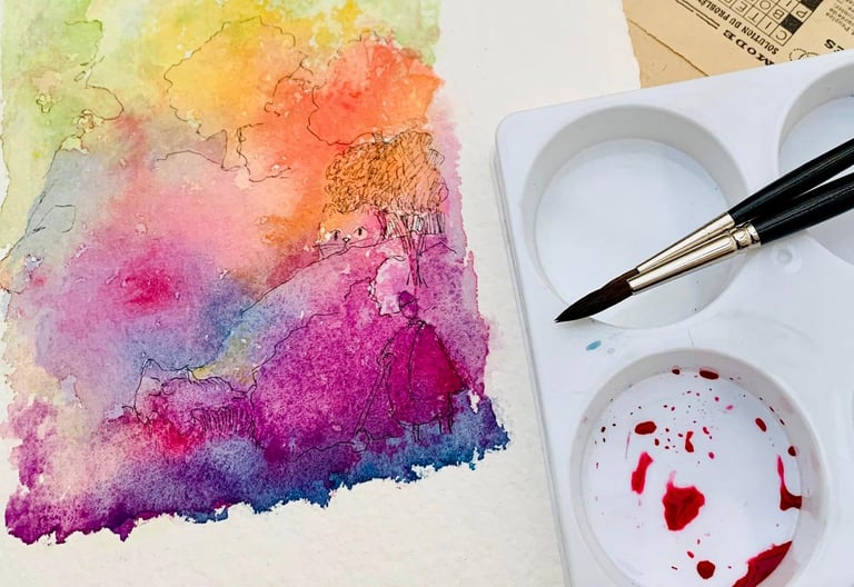 L'aquarelle est faite de pigments écrasés, mélangés avec de l'eau et de la gomme arabique. Elle est généralement appliquée sur un support en papier. L'aquarelle est utilisée selon la méthode du lavis, c'est-à-dire qu'elle est diluée avec plus ou moins d'eau, ce qui lui permet d'avoir plus ou moins de transparence, créant ainsi divers effets en fonction du type de papier. L'aquarelle convient parfaitement au travail d'esquisse et aux carnets de voyage, comme en témoignent les fameux carnets de Eugène Delacroix. Étant facilement transportable, elle permet de mettre rapidement de la couleur sur une image initialement dessinée au crayon ou au feutre fin.